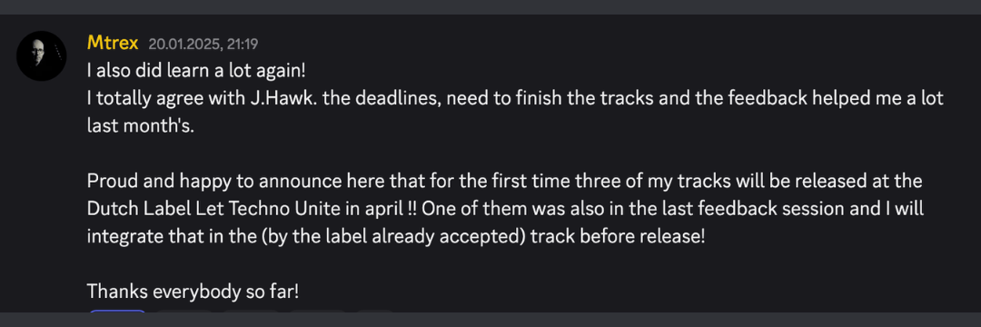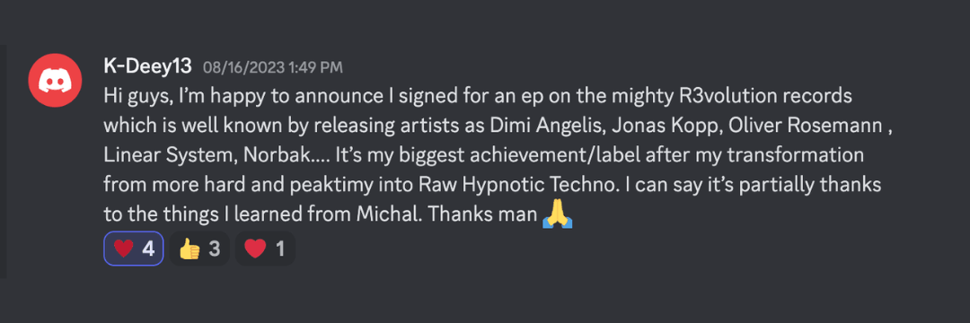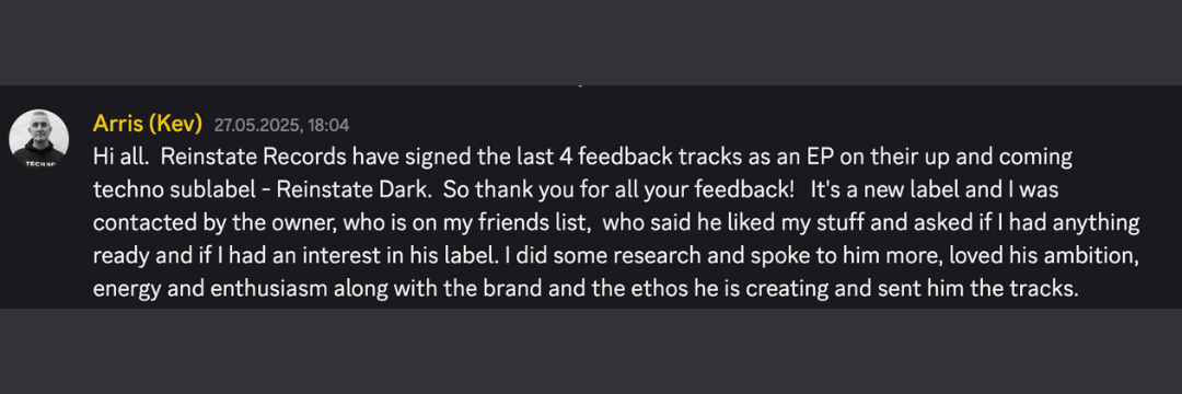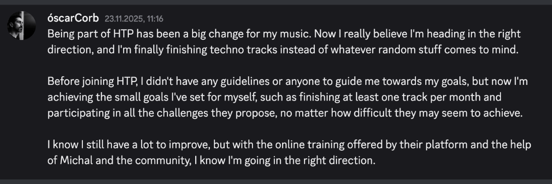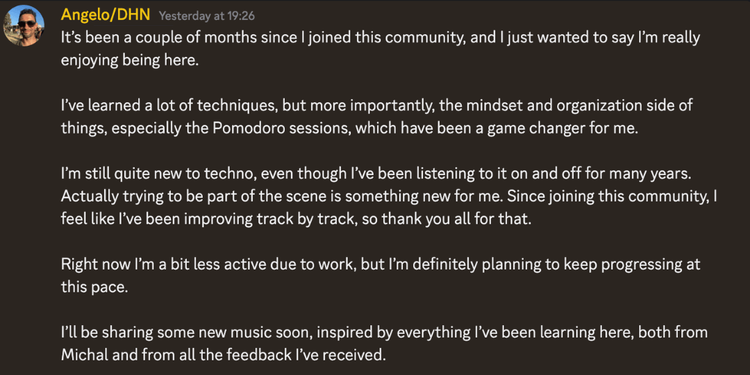 This community helps techno producers move from endless loops to label-ready releases — so they can finally share their sound with the world and grow into confident, prolific artists.