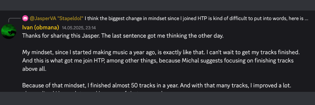 HTP Community will help you progress from beginner or intermediate to prolific producer... Fast 🚀