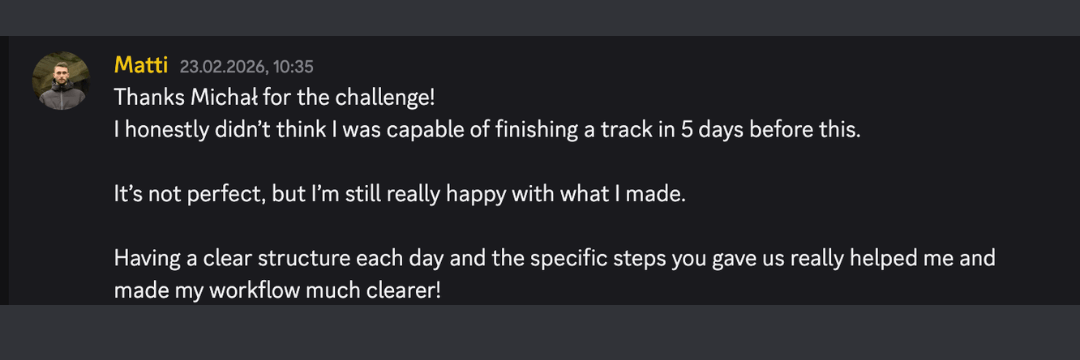 For the past 7 years, I've been teaching music production with the focus on establishing effective workflow and a healthy mindset. I work with all levels of producers, and my unique skills have helped my students finish more than 1200 tracks.