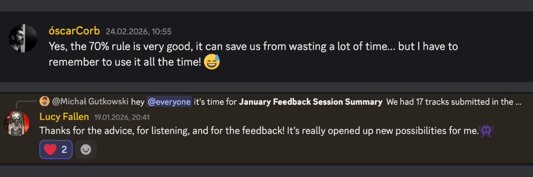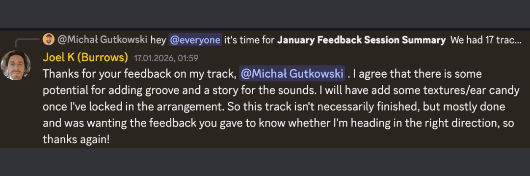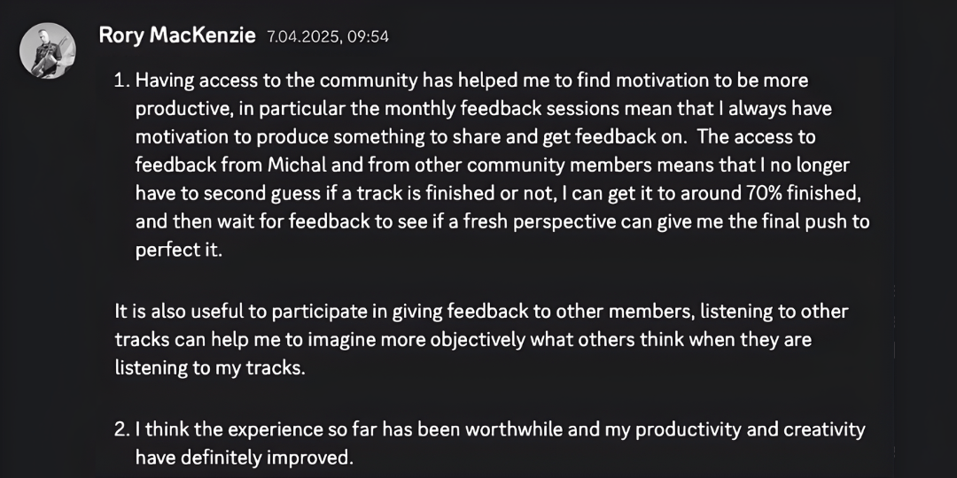 Access to monthly feedback session & community call where I provide feedback on your tracks (47 €)